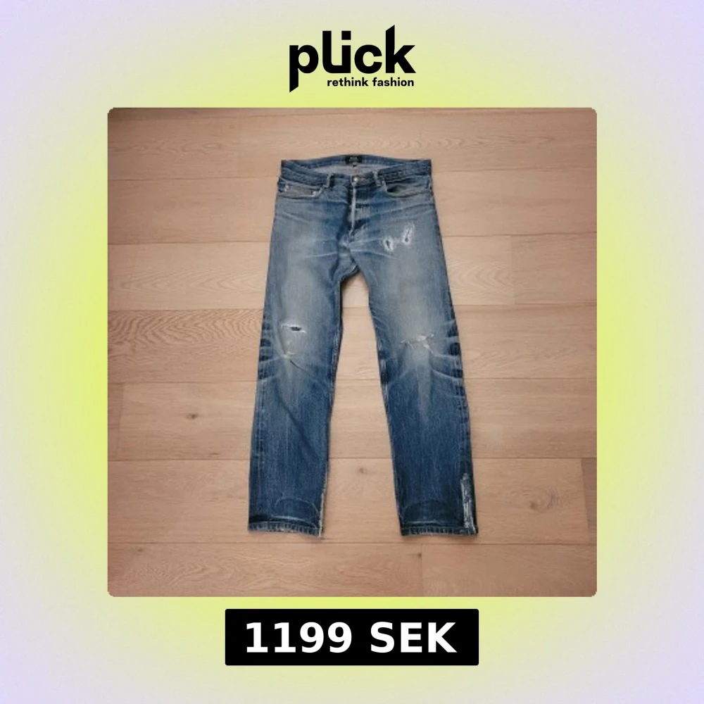 Extremt fina Apc selvedge jeans med otroliga slitningar! Modell: New standard Mått: Midja 41 Längd 97 Benöppning 19