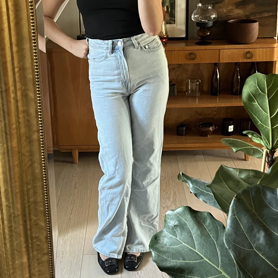 Jättesnygga jeans köpa på weekday för några år sedan men har tyvärr blivit för små! De är knappt använda så i väldigt bra skick💖