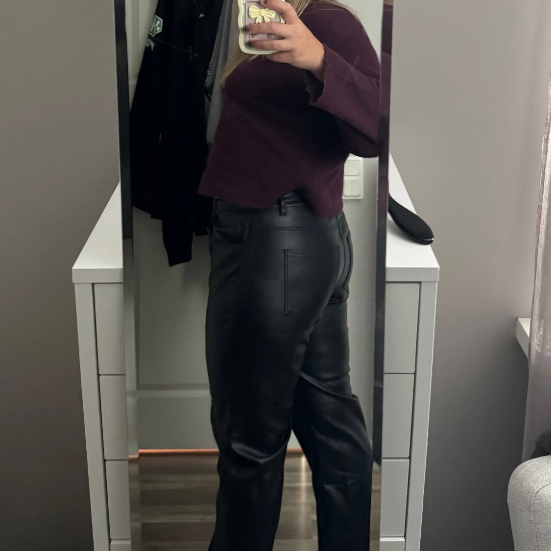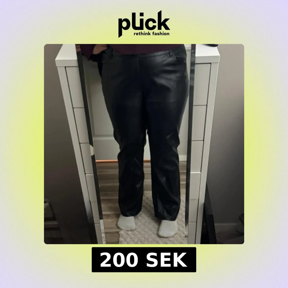 rendy skinnbyxor från Bikbok i fejkskinn. Snygg passform, passar både till vardag och fest. Storlek: 48 Bara använda några få gånger, mycket fint skick.