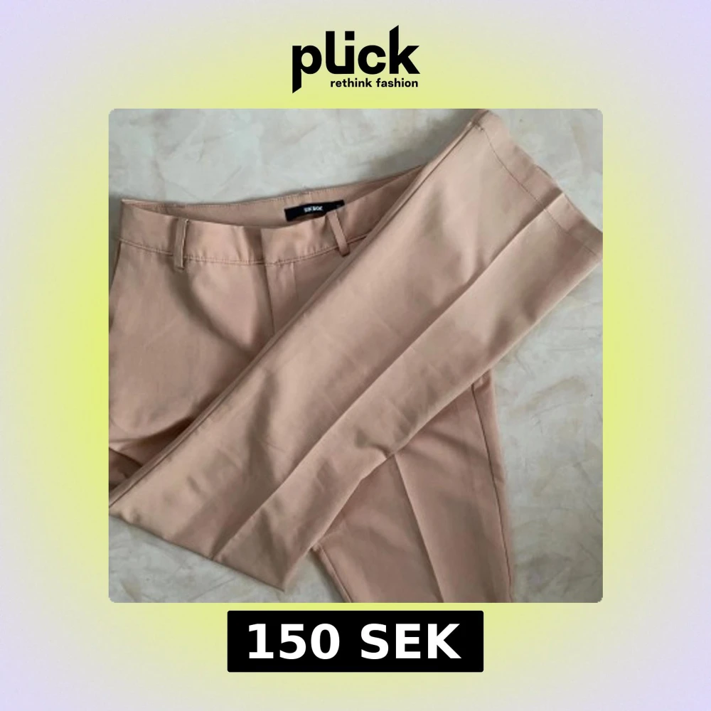Snygga trendiga aprikos rosa kostymbyxor från BikBok med en klassisk bootcut passform. Byxorna har hällor för bälte. Köpt för ca 499kr
