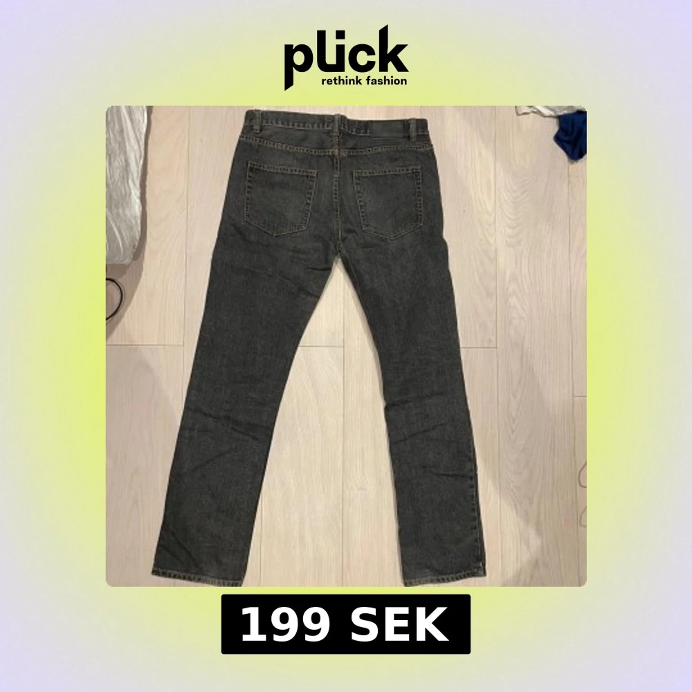 Snygga svarta jeansbyxor fràn 1953. De har en rak passform och snygga bruna sömmarl. Byxorna har en knapp och dragkedja framtill.