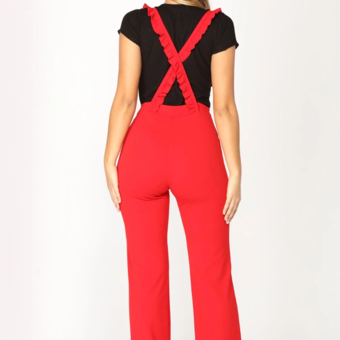 Röd byxdress från den amerikanska webbshoppen fashion Nova! Helt oanvänd med prislappar kvar. Materialet är stretchigt! Kan mötas i Uppsala eller fraktas 🌹