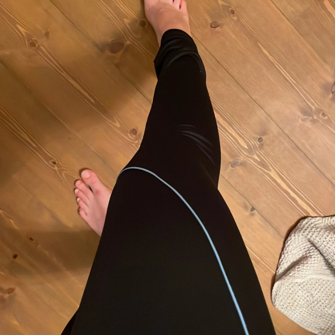 Svarta träningsbyxor som är helt oanvänd och har ett blåttsträck som detalj!💙🖤 Säljer för endast 40 kr!