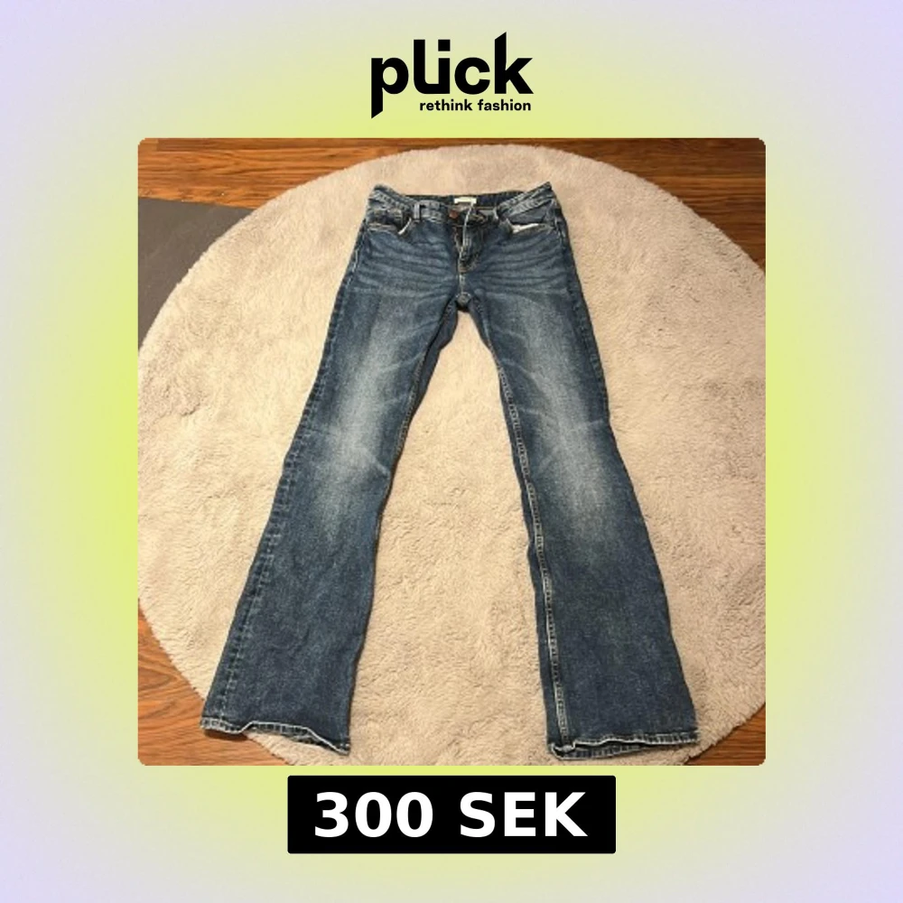 Säljer ett par klassiska blå lågmidjade bootcut jeans från Lindex med en snygg tvätt. De har en låg midja och fem fickor. Perfekta för en avslappnad stil.