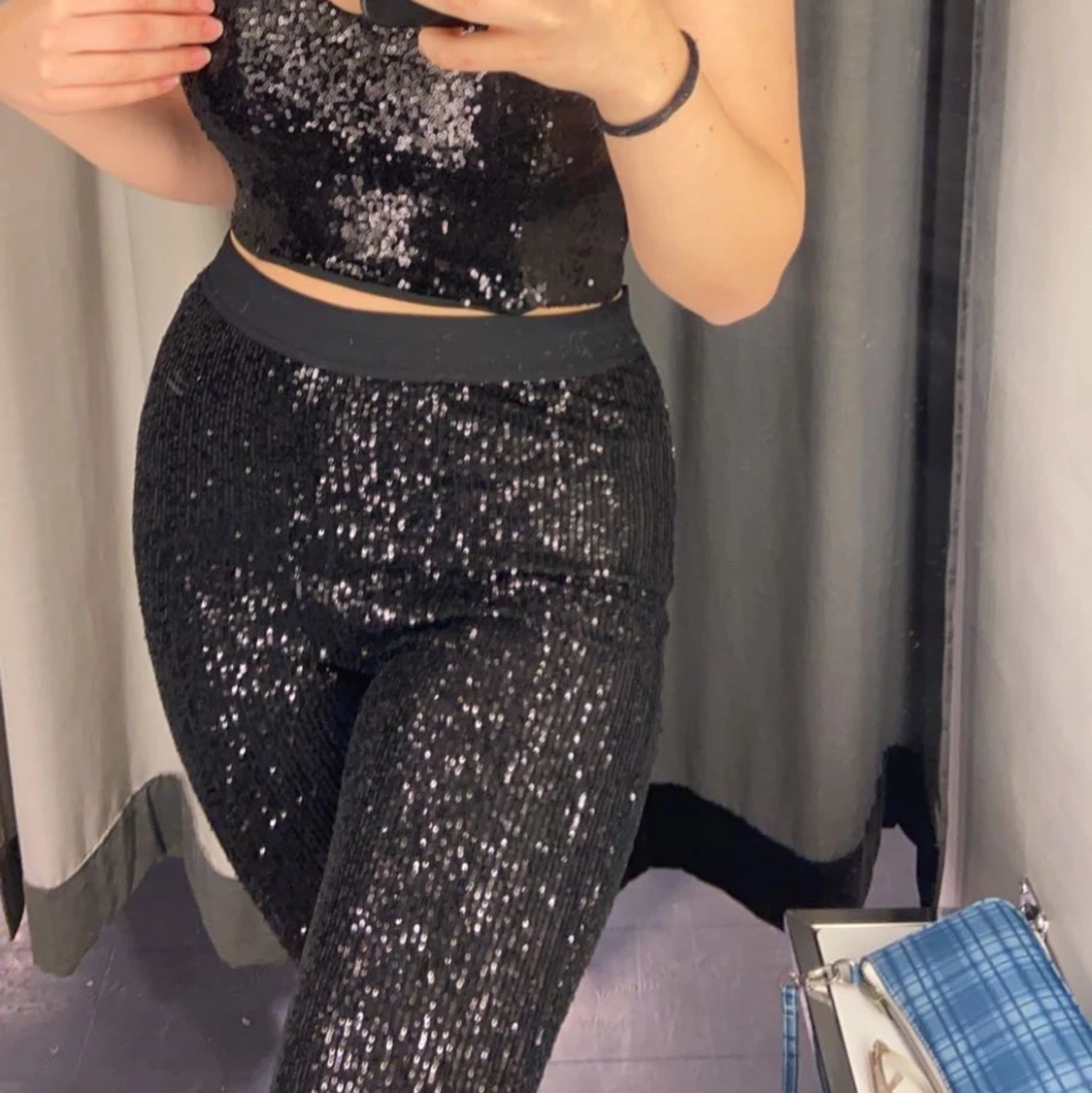 Paljettbyxor har använt dom 2 gånger, storlek L men dom går till M också då det är de jag har i normala fall! Säljer för 200kr+ frakt💖
