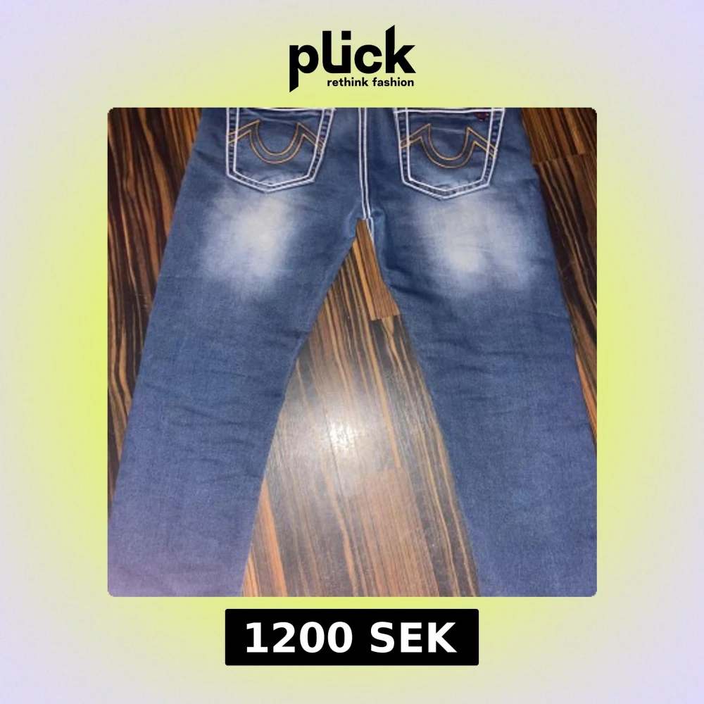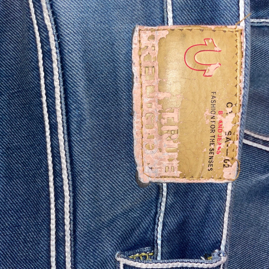 Säljer ett par blåa jeans från True Religion med big-t stitches. Jeansen har en snygg tvättad look. Perfekta för en calm luh fit. Pröjsa jätte gärna vill få byxorna sålda så snabbt som möjligt.