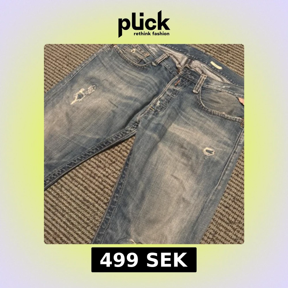 As feta jeans ifrån Replay, modellen heter Doc och är en sällsynt modell, har inte sett några andra jeans i denna modell varken här eller på vinted. W36 L36! På bild 3 så kan du se att de är ihop sydda pga tidigare hål. Har ni några frågor är det bara att skicka ett PM! Priset är ej hugget i sten, men skicka inga lowball offers😁😁