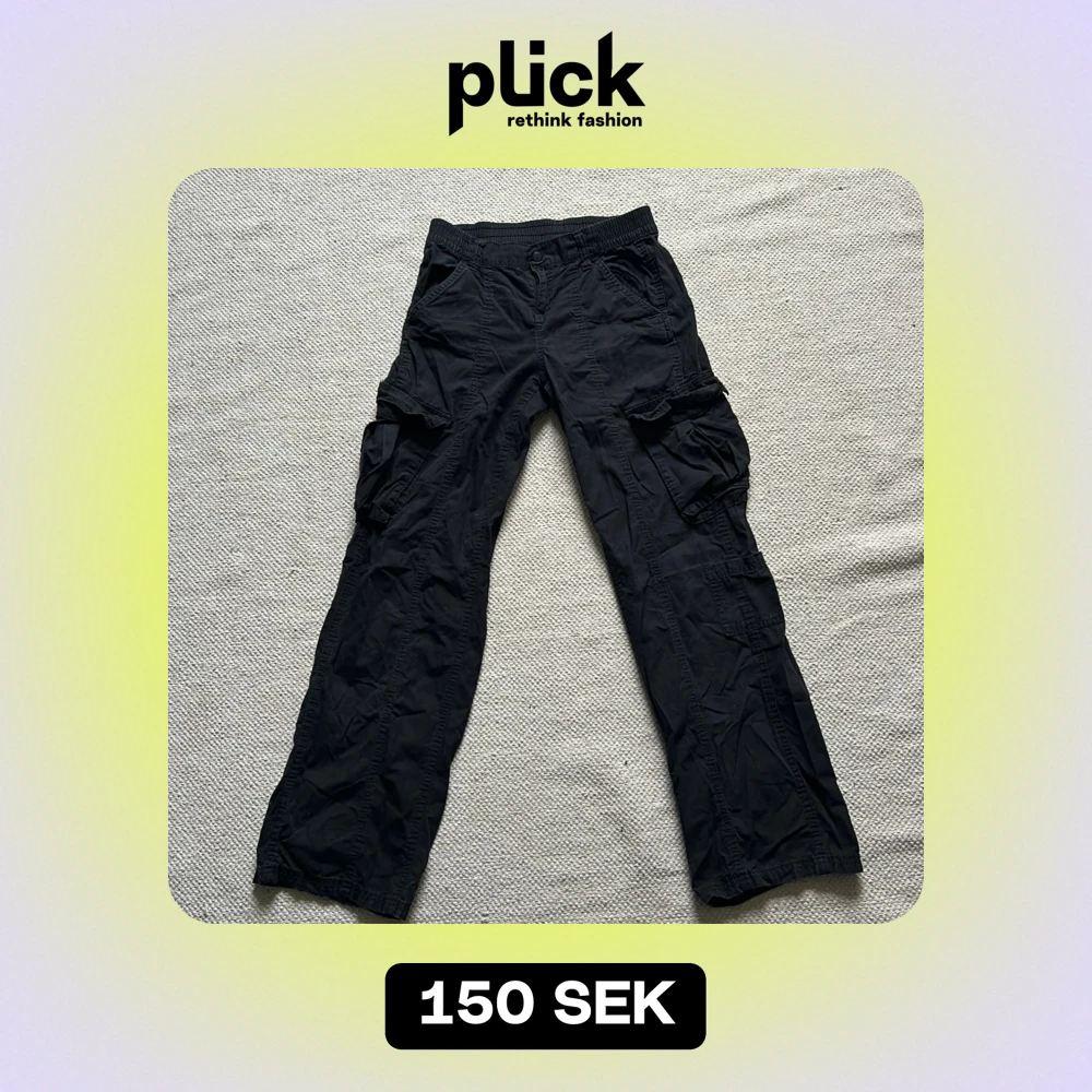 Säljer ett par svarta cargobyxor i loose fit. Står ingen storlek i dem men tror det är 34. Bra skick, skriv för fler bilder eller frågor.