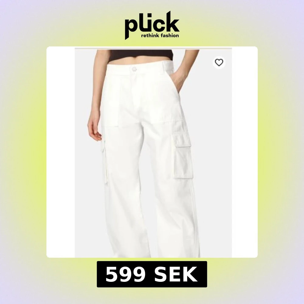 Snygga vita cargobyxor med raka ben och flera stora fickor på sidorna. Byxorna har normal passform och är tillverkade i bomull, vilket gör dem både bekväma och lätta. orginalpriset kan du se där på prislappen 599kr och jag säljer för orginalpriset (dom kom med ganska dyr frakt för mig, och jag gillar dom mycket så säljer för orginalpriset). Sålänge man har ljusa underkläder under så är dom inte genomskinliga