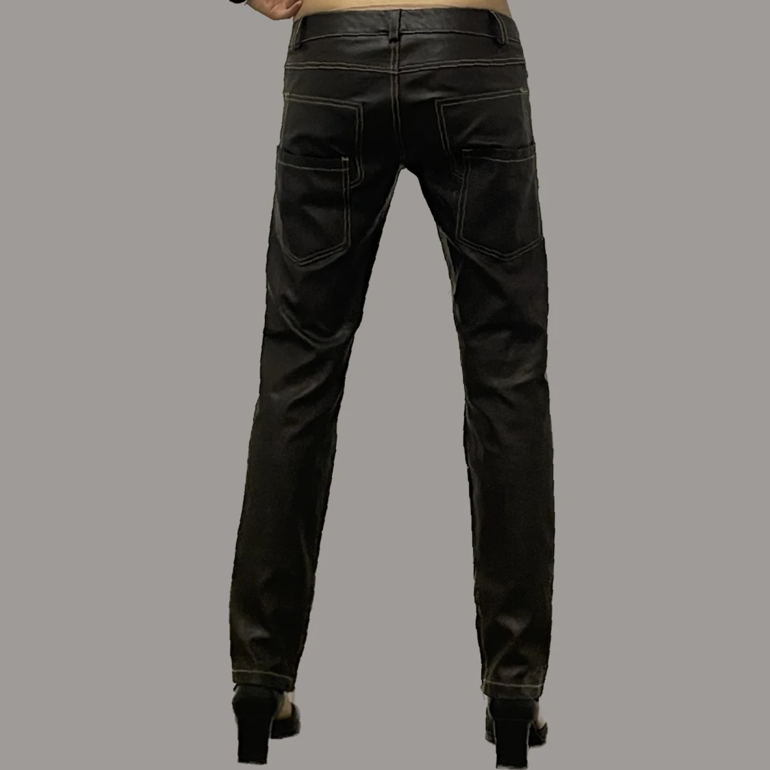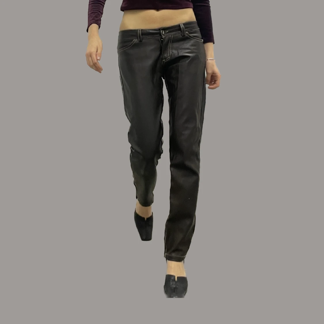höftmått 39cm innerbenslängd 78 inte riktigt läder, har bra stretch