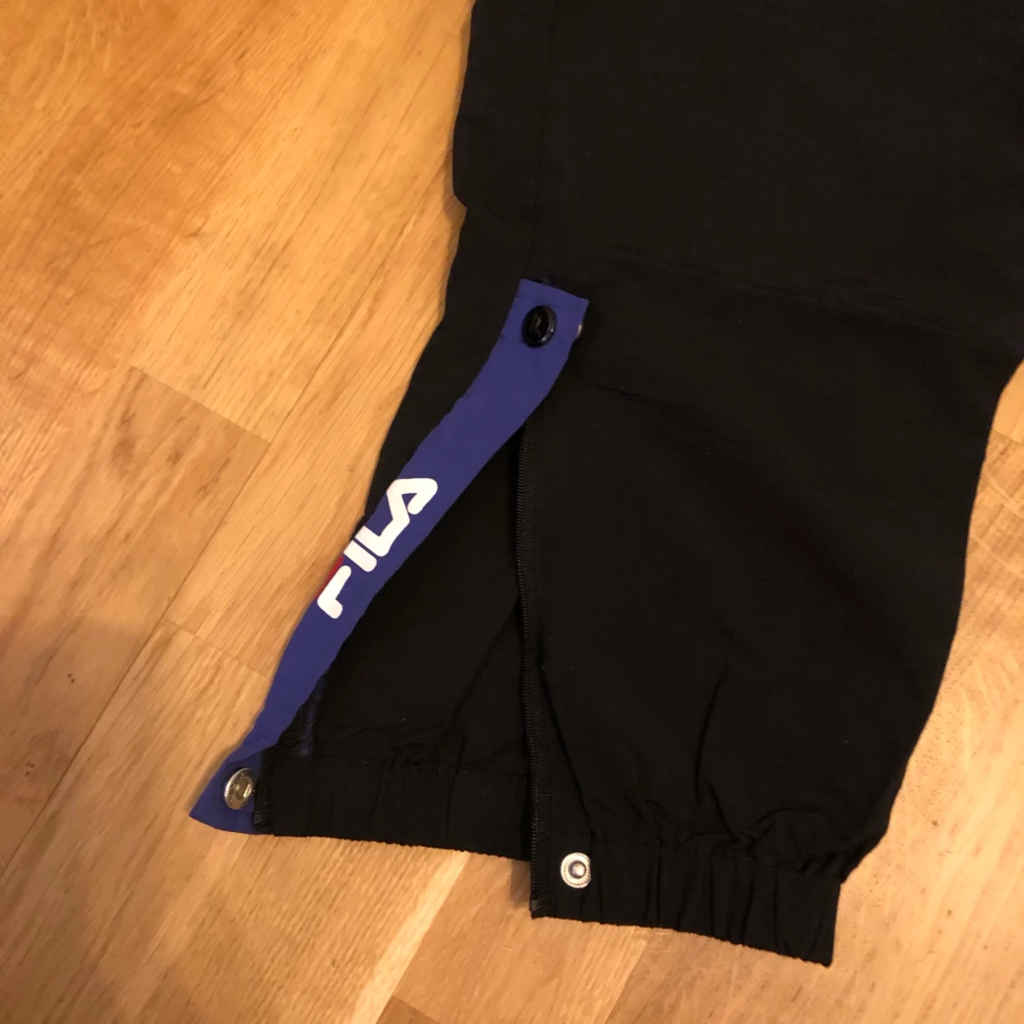 Svarta Fila byxor med snygga detaljer. Storlek M. Går att öppna längst ner vid benen med dragkedja.