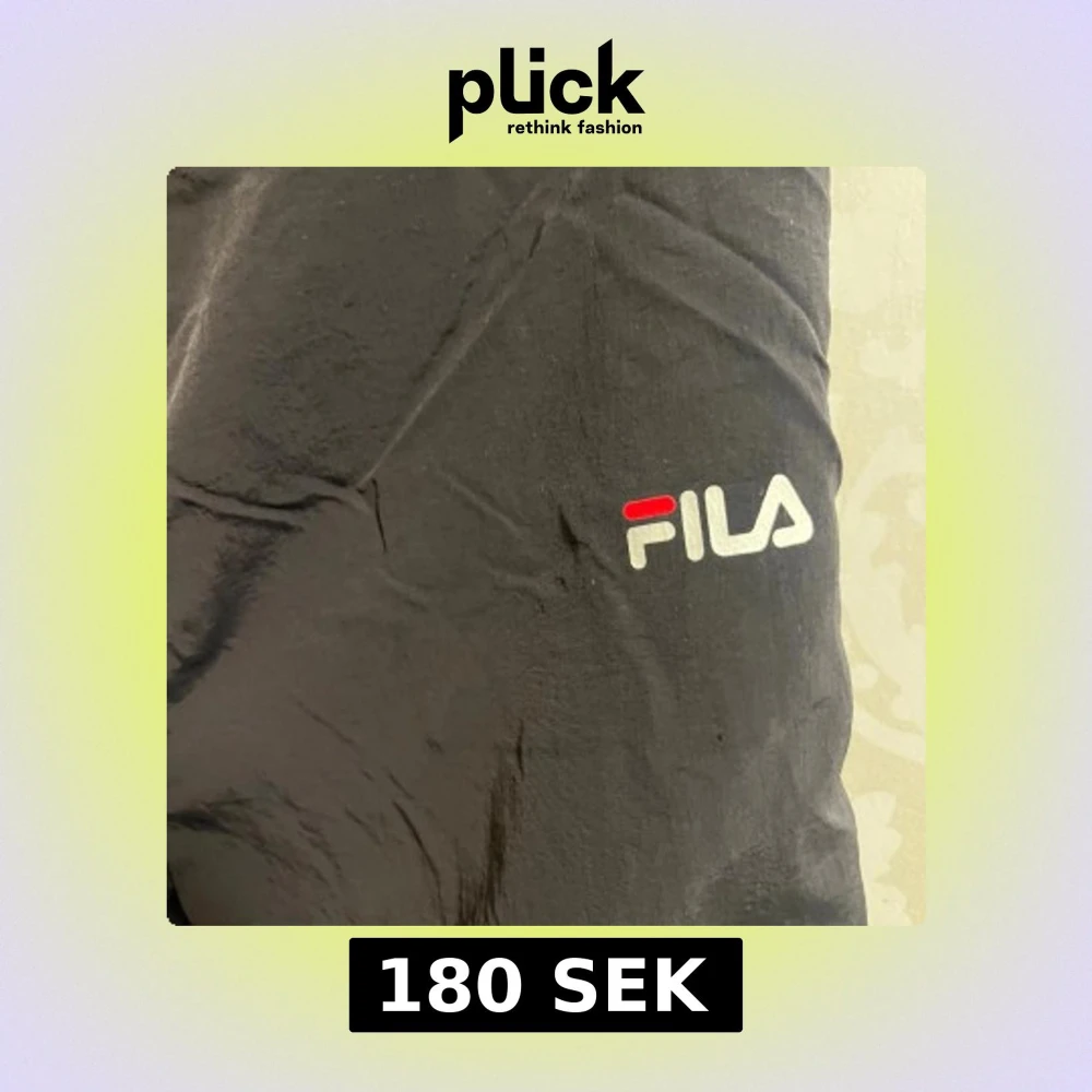 Snygga svarta täckbyxor från FILA med vita och röda detaljer längst ner på benen och logga på låret. Byxorna har resår i midjan och vita ränder längs sidorna. Perfekta för kalla dagar eller sportiga outfits.