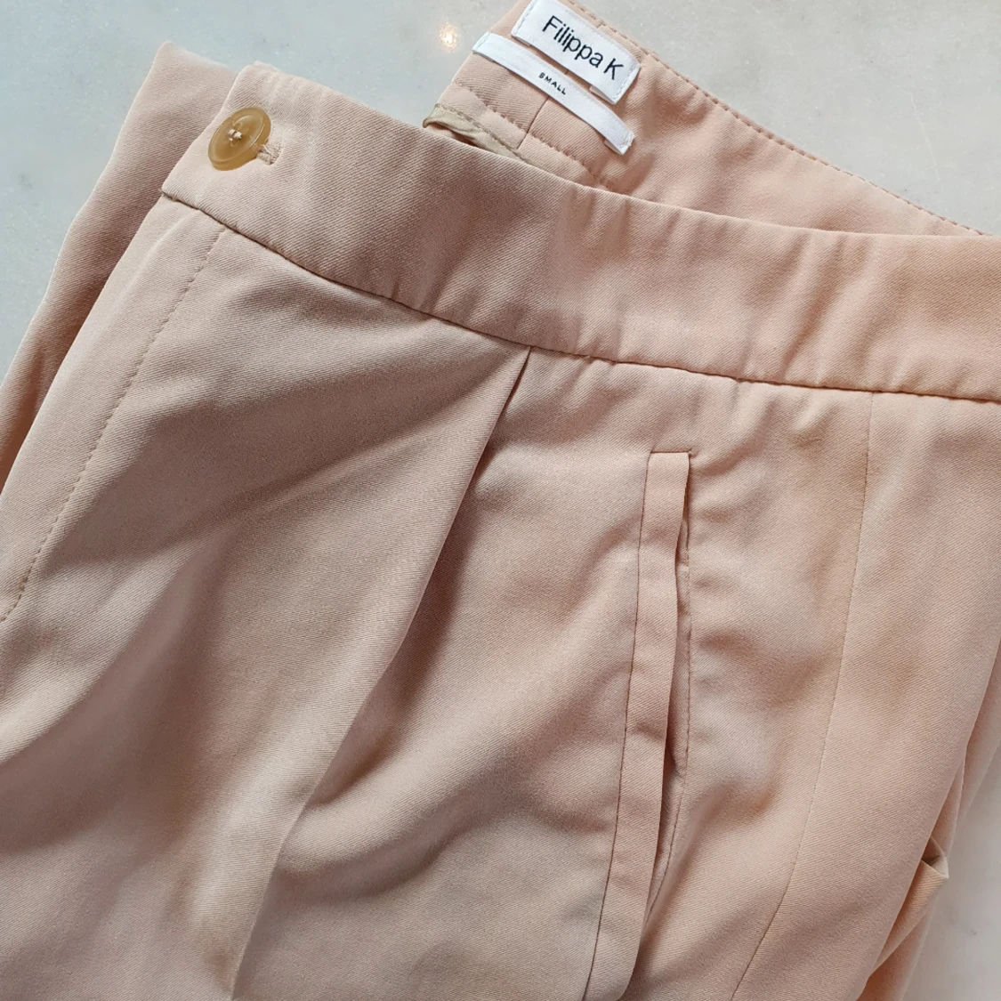 Filippa K, kostymbyxor. Extremt sköna & snygga avslappnade kostym byxor. De behöver läggas om längst ned, detta görs enkelt med uppläggningstejp & strykjärn. De är även lite fläckiga längst ned i bena pga långa dock inget som syns. Kan nötas upp i Huddinge, Älvsjö, Årsta, Globen & Västberga