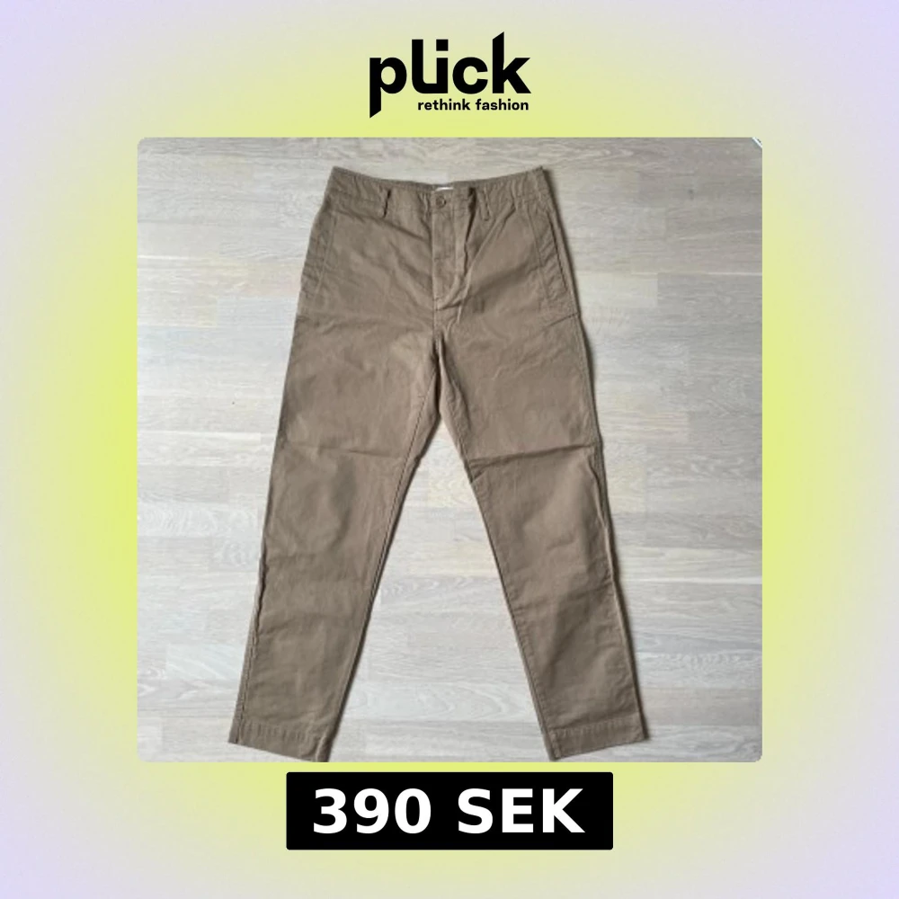 Snygga beiga chinos från Filippa K i klassisk rak modell. Byxorna har två sidfickor fram och två bakfickor med lock och knapp. Tillverkade i bomull med bälteshällor och knappgylf. Perfekta för en clean och stilren look.