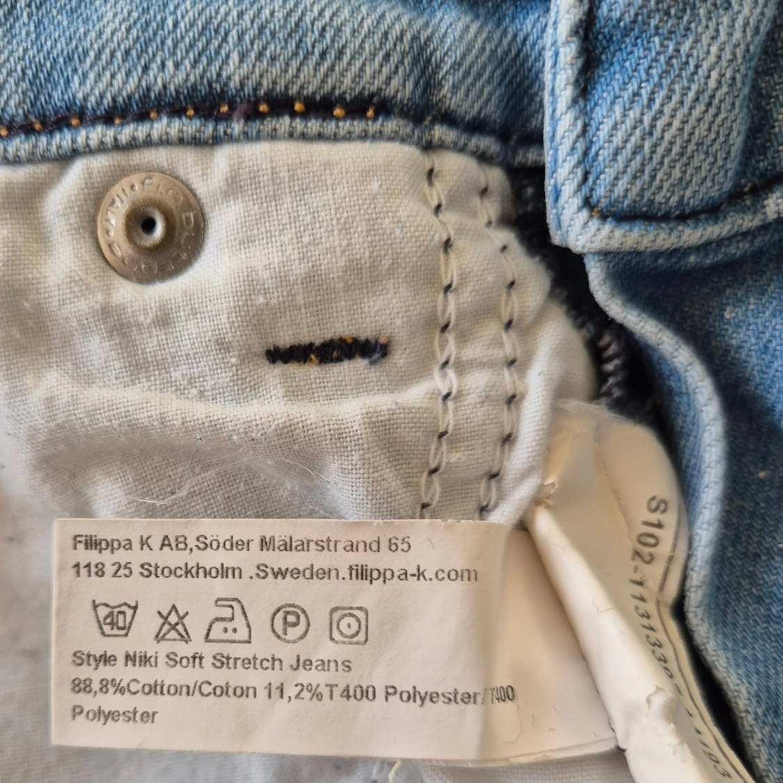 Snygga ljusblå jeans från Filippa K i modellen Niki Soft Stretch. Klassisk femficksdesign, raka ben och ganska tight passform. Stl W29/L34
