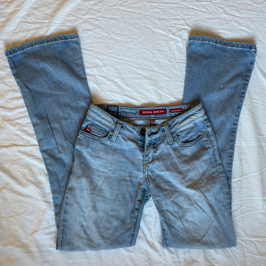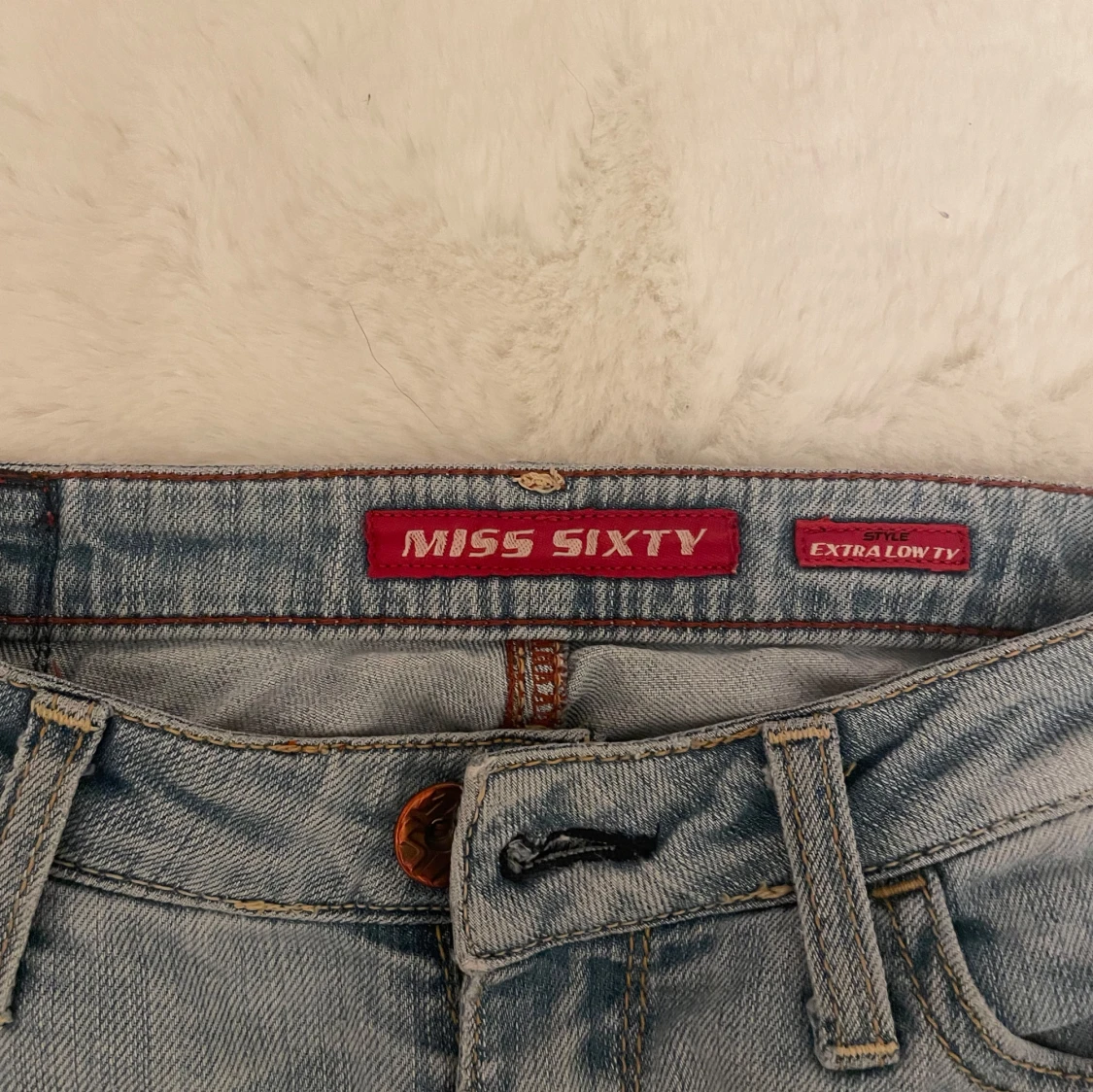 Hejj! Säljer mina absoluta favorit jeans då dom tyvärr blivit för små. Modellen på dom är väldigt lågmidjade och bootcut. Precis samma modell och färg som bild 1 (lånad bild) dock så har mina jeans andra slags hål, men det är nånting man lätt kan göra själv! Dom har inga defekter förutom att dom gått upp vid midjan/sidan där bak som jag nu lämnat in och syns knappt! Annars är dom i superbra skick. Om du skulle ha några frågor är det bara att höra av dig. (nypris:2000kr)