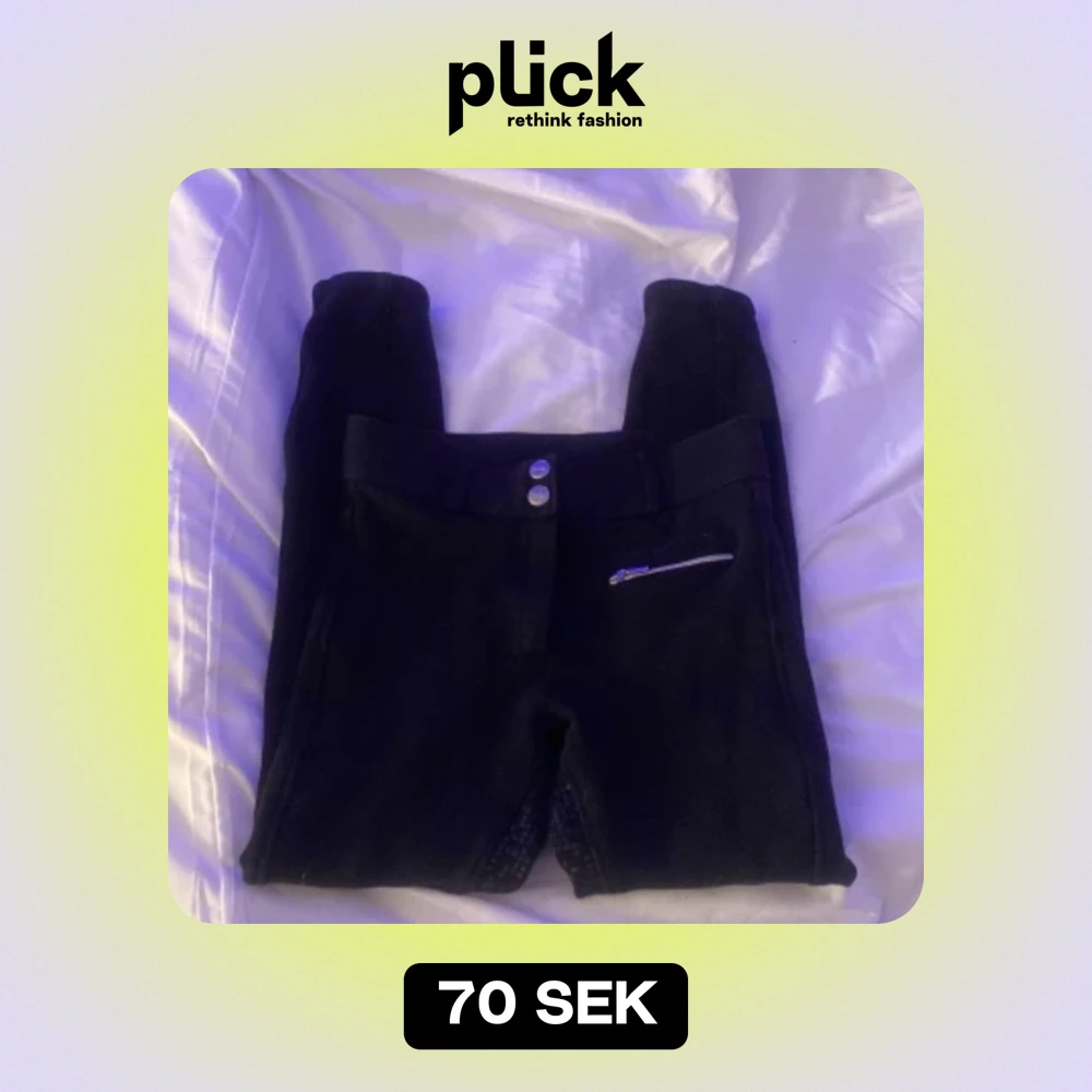 Använda 2-3 ggr, mycket fint skick. Säljer dom då jag är för lång för dom. Bra grep i sadeln, liten och bra mobilficka. 95% bomull, 5% elastan