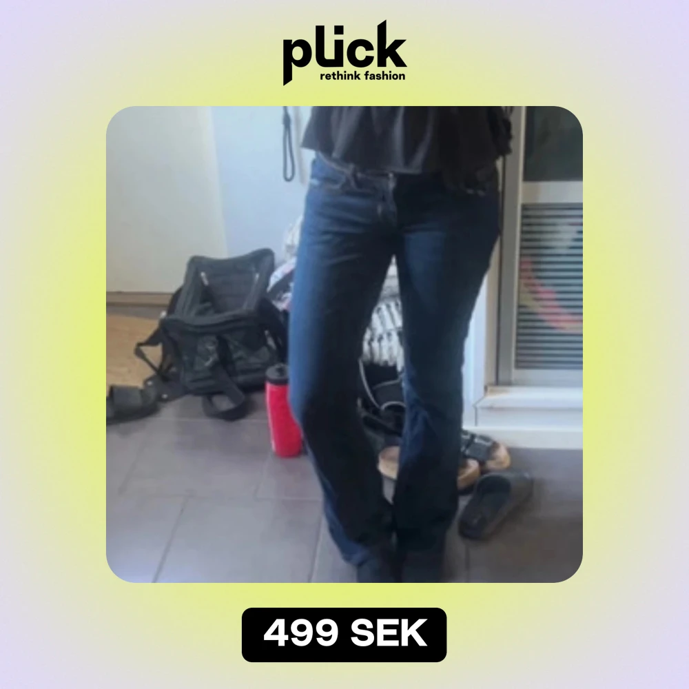 Säljer ett par mörkblå jeans i bra skick. Dem är perfekta för vardagsbruk. Jeansen har en låg midja och är gjorda i ett slitstarkt denimtyg. Perfekta för både höst och vår! Bootcut jeans