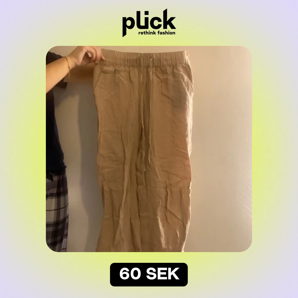 Linnebyxor i beige (behöver strykas) jätte bra material passar däremot personer som är 165 cm och kortare.