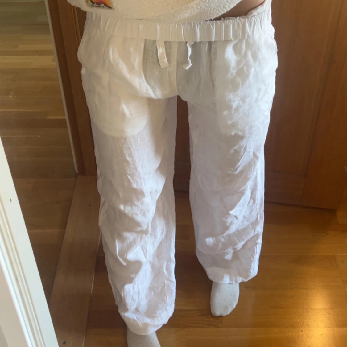 Fina linnebyxor som tyvärr är lite stora för mig, nytt skick. Stor i storleken så passar även S💕