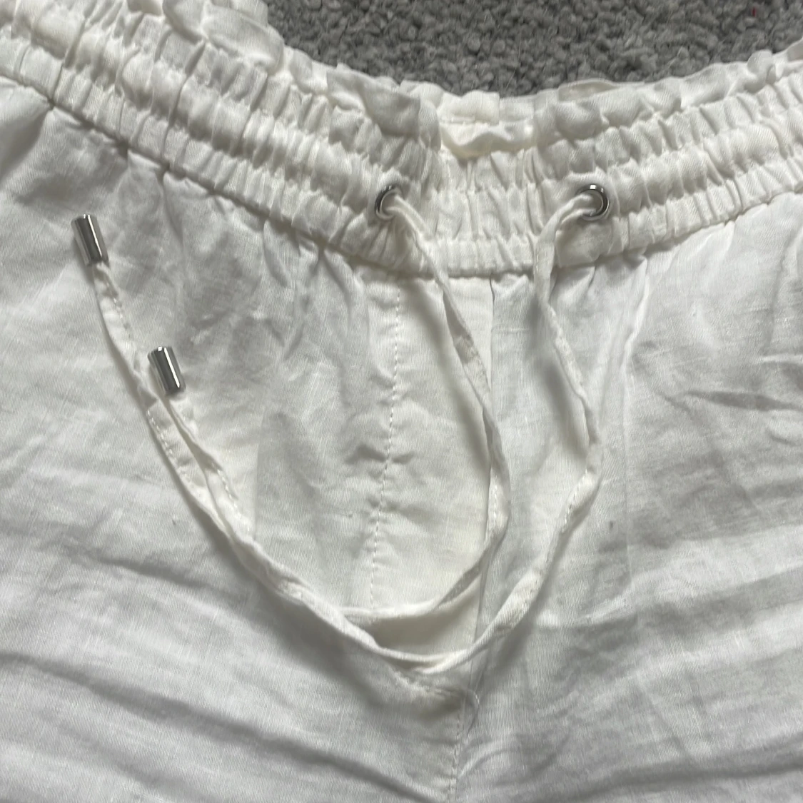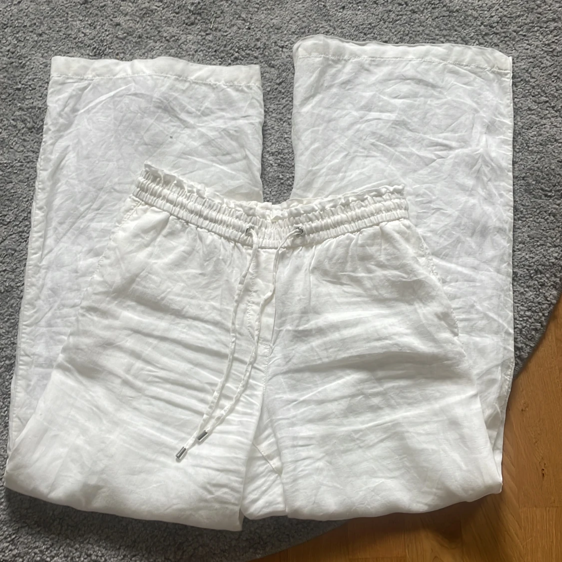 Vita linnebyxor i väldigt fint skick! Knappt använda då jag har flera, köpta förra sommaren på esprit för 700kr🤍 Ganska vida i benen och sköna🤍