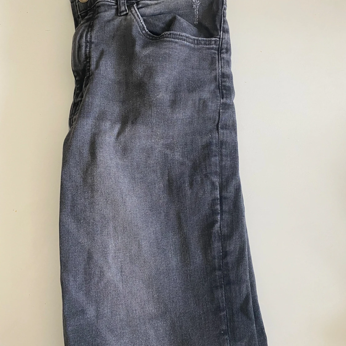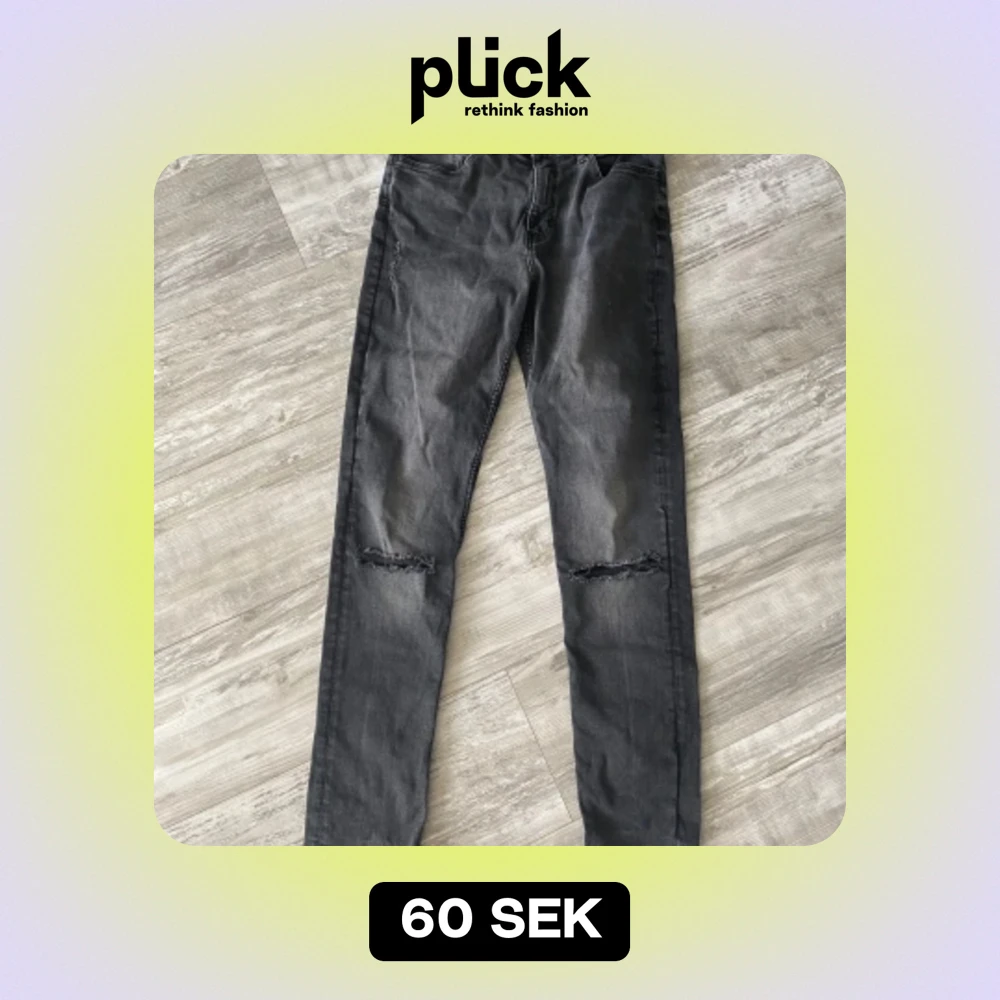 Svarta ”slitna” jeans. Gjorda hål vid knä. Köpta så. Så gott som nya. Slim modell. Stl 170