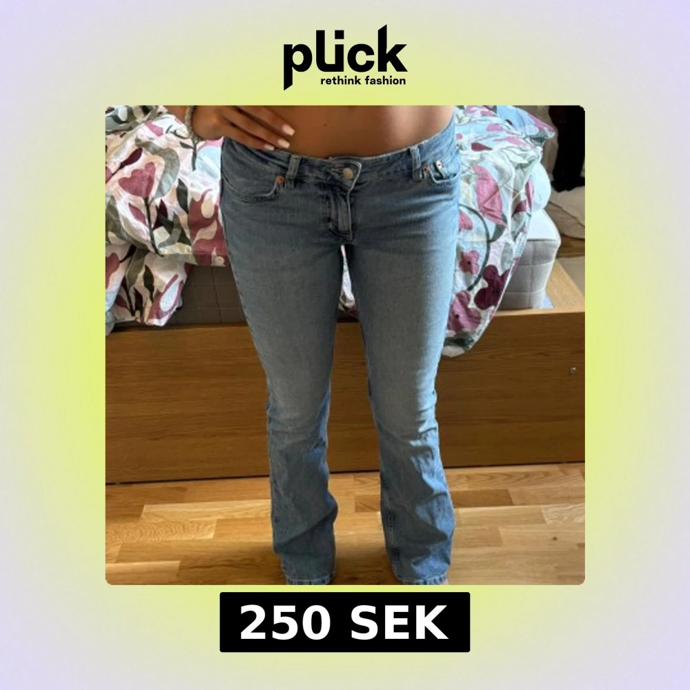 bootcut lågmidjade ljusblå jeans från junkyard! sitter jättebra och är lite stretchiga🥰tecken på användning men fortfarande skitsnygga! ordinarie pris 700kr