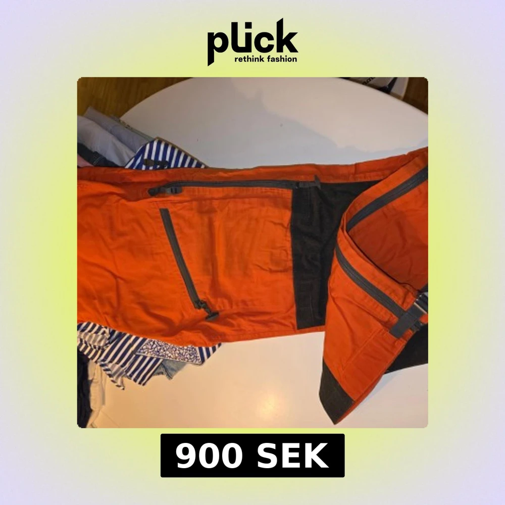 Snygga orange täckbyxor från Fjällräven med svarta förstärkningar på knän och benslut. Byxorna har flera praktiska dragkedjefickor och bälteshällor. Perfekta för utomhusaktiviteter och äventyr. Modellen är för kvinnor och har en cool outdoor-look. Aldrig använda