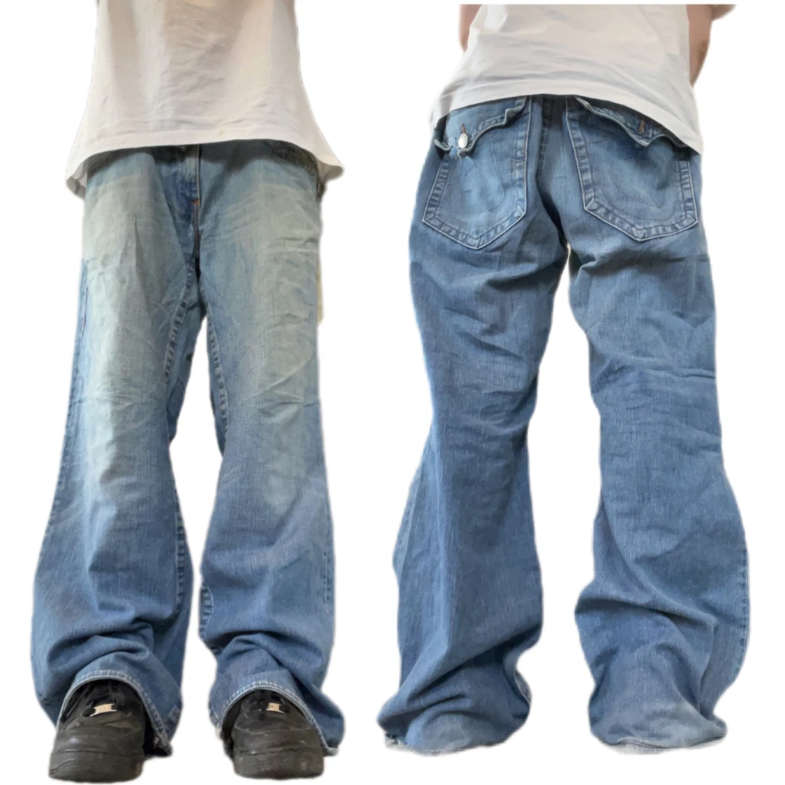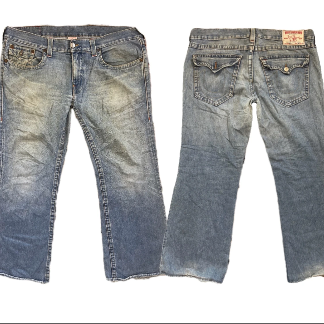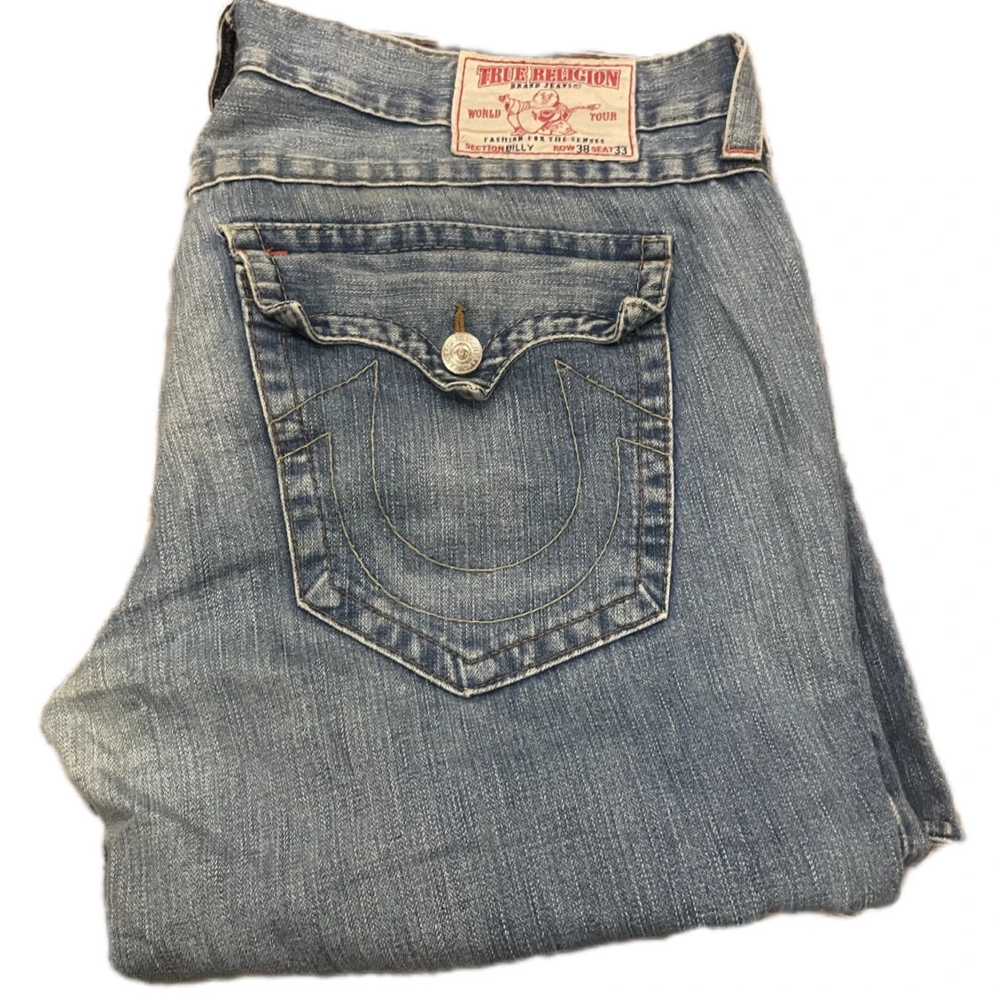Baggy truereligion jeans i fint skick utan fläckar, men det saknas en knapp. Midjemåttet är 55cm, innerbenslängden är 78cm och fotvidden är 29cm. Modellen är 170cm. Tryck gärna på köp nu❣️