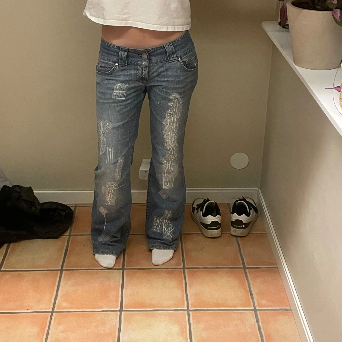 Lågmidjade bootcut jeans med detaljer