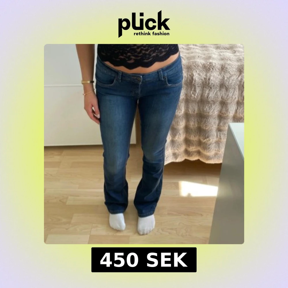 Snygga blå jeansbyxor med en klassisk design. De har en normal passform och är perfekta för en avslappnad stil. Byxorna har en knapp och dragkedja framtill samt fickor både fram och bak.