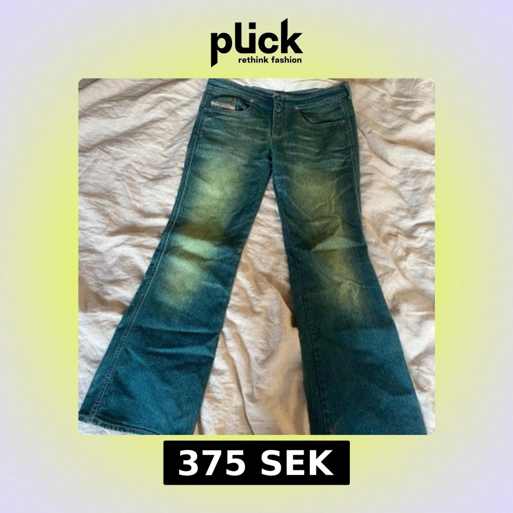flare/bootcut lågmidjade jeans från diesel med grön ton. Dom är använda men är inte slitna och har inga defekter. Pris kan diskuteras!