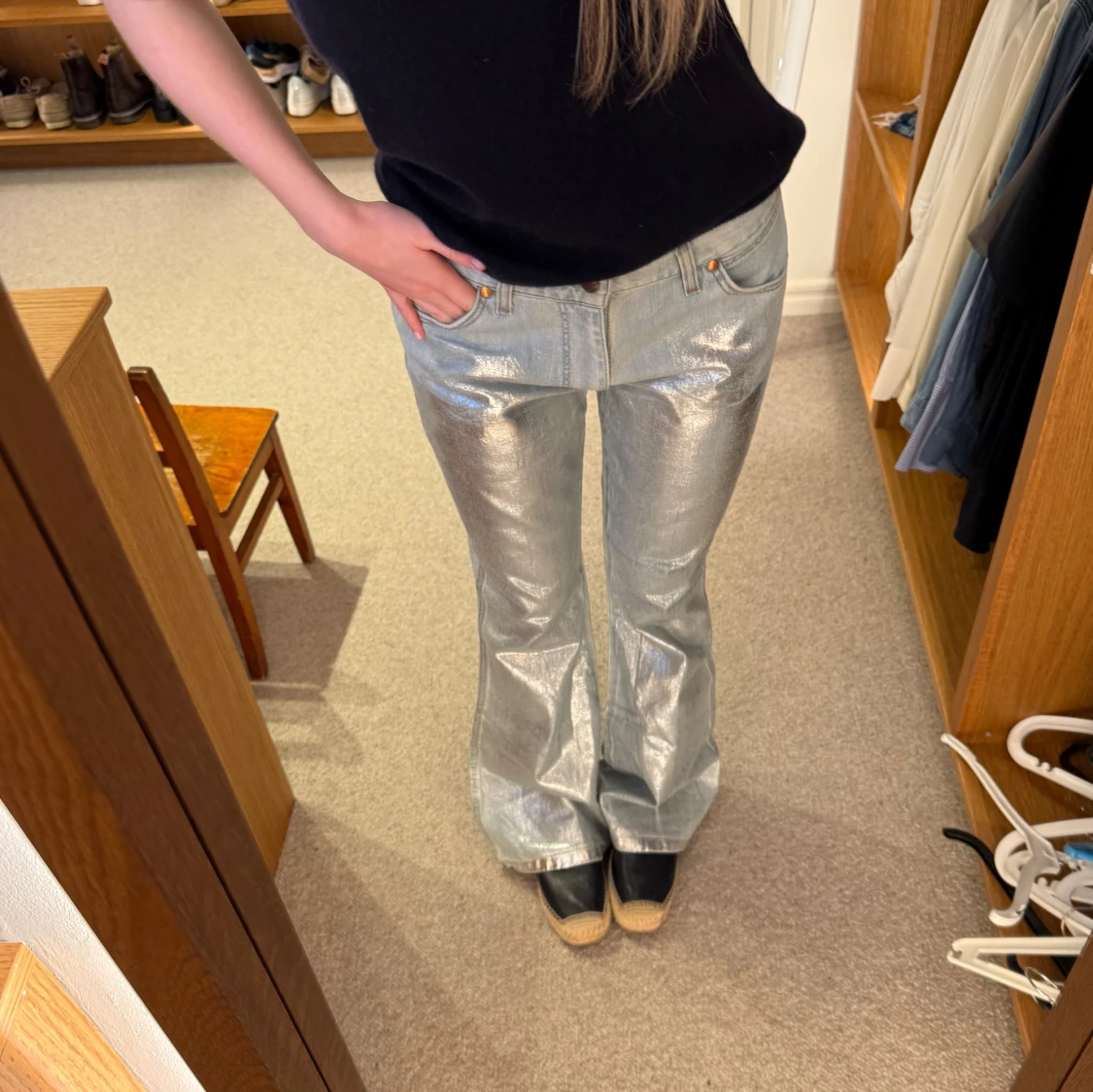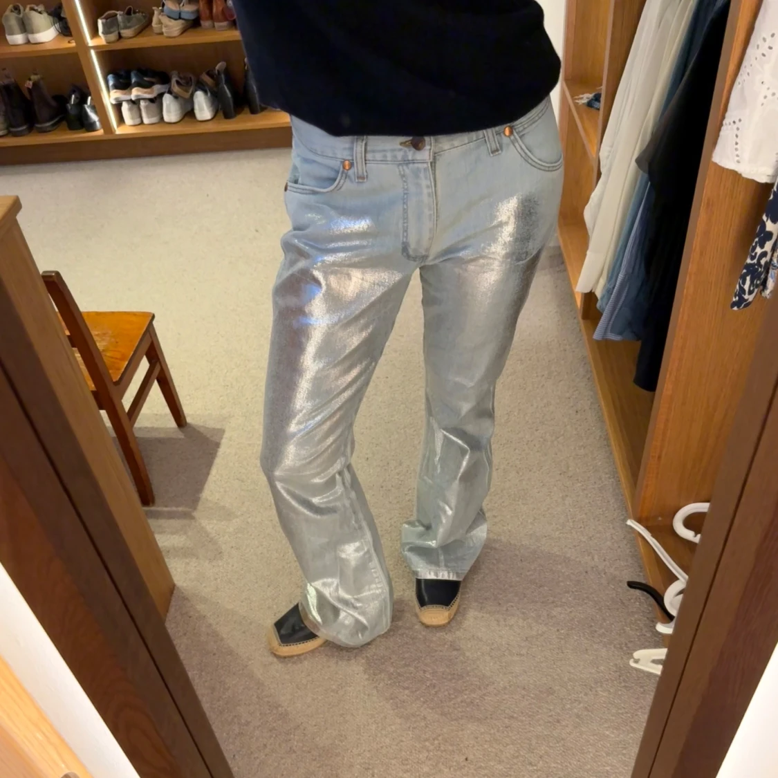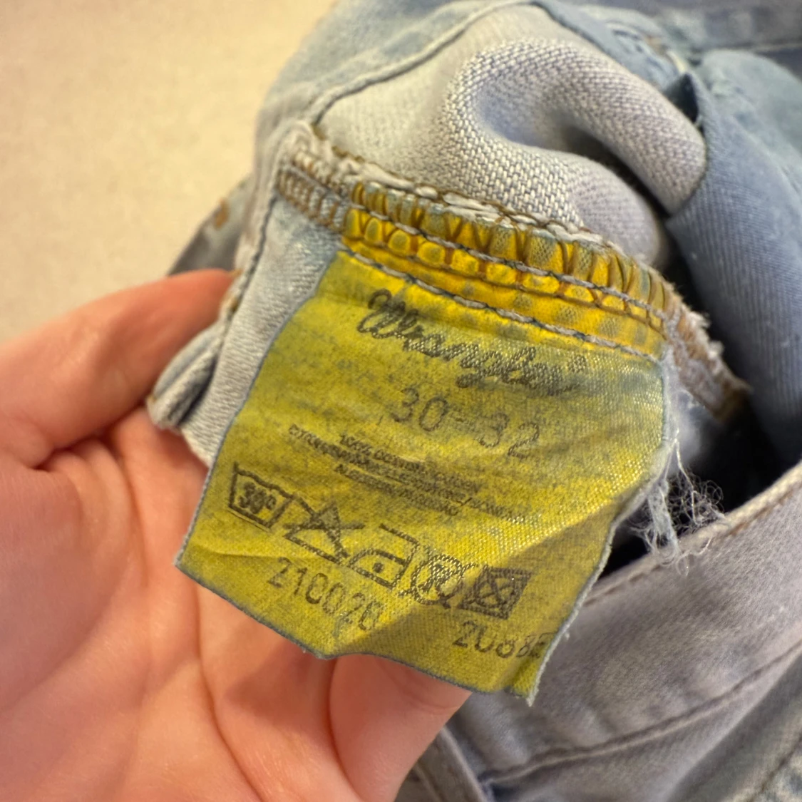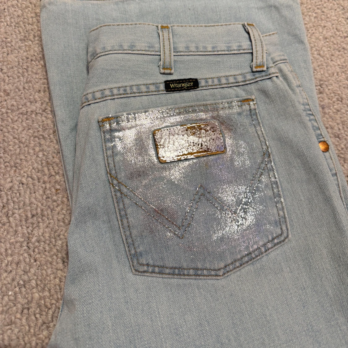 Supercoola jeans från wrangler - low waist och bootcut! Ljusblå med silver detaljer, passar perfekt att klä upp! W30L31 men passar mig som brukar ha 36/38