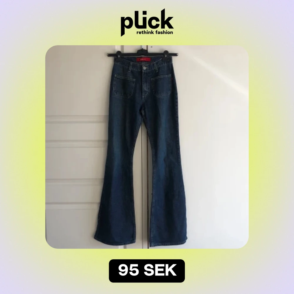 flared highwaist jeans från only, jätte snygga!! tror dom är från 90-00tal😋lite slitna längst ner på bena (sista bild) men annars bra skick. tvättas före det skickas!❤️
