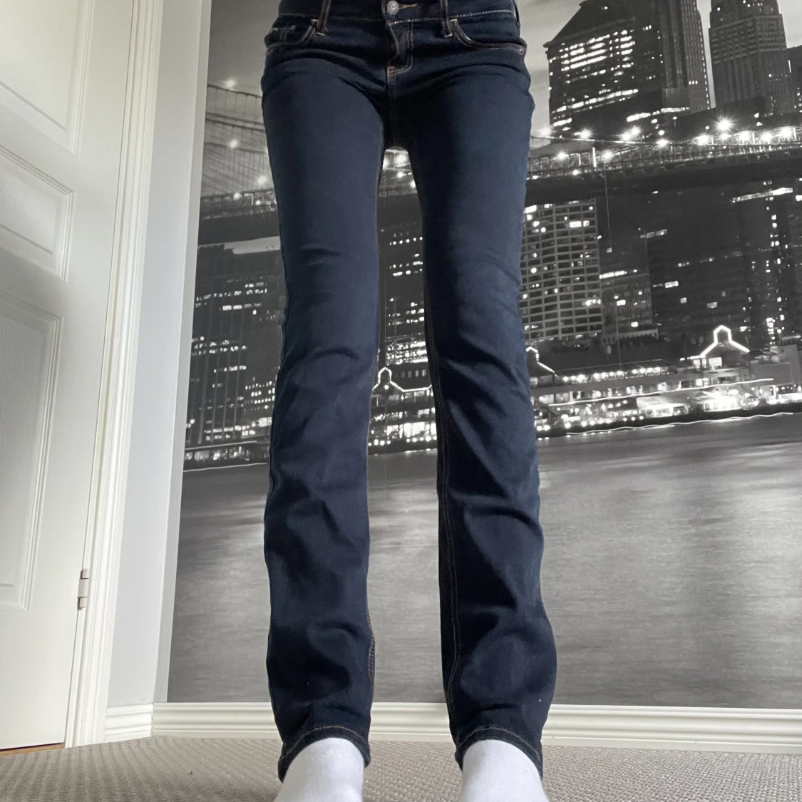 W26 L33 lågmidjade bootcut Hollister jeans i riktigt bra skick men som inte passar mig längre, använd gärna köp nu🤍