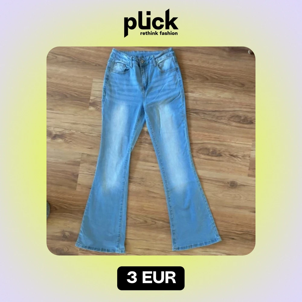 Säljer ett par ljusblå bootcut/flared jeans i bra skick. De är perfekta för både vardag och fest. Jeansen har en snygg utsvängd stil. De har blivit använda max två gånger!