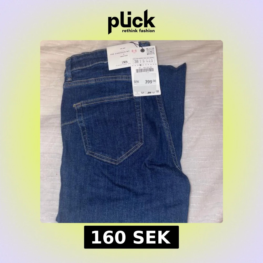 Snygga mörkblå utsvängda jeans från Zara med klassiska fickor och kontrastsömmar. Jeansen har medelhög midja och är tillverkade i ett stretchigt bomullsmaterial som sitter skönt och formar sig efter kroppen. OBS! På bilden bär jag storlek S