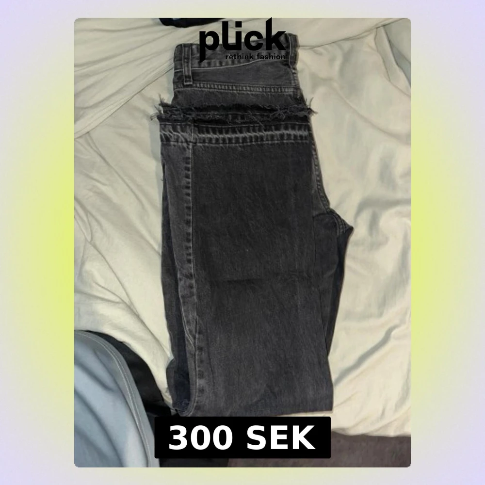 Snygga svarta jeans med rå, fransad kant upptill för en edgy vibe. Modellen har klassiska fem fickor och raka ben. Jeansen är tillverkade i ett slitstarkt denimtyg och har en mörk tvätt som ger en cool look.