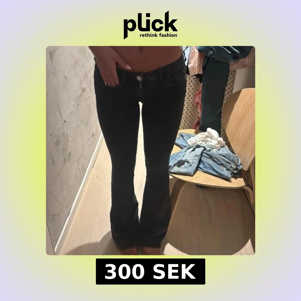 Svarta jeans som blivit mer åt de mörk gråa hållet efter många tvättar. Lite slitna längs fötterna och vid insida lår. 🩷 jag är 168