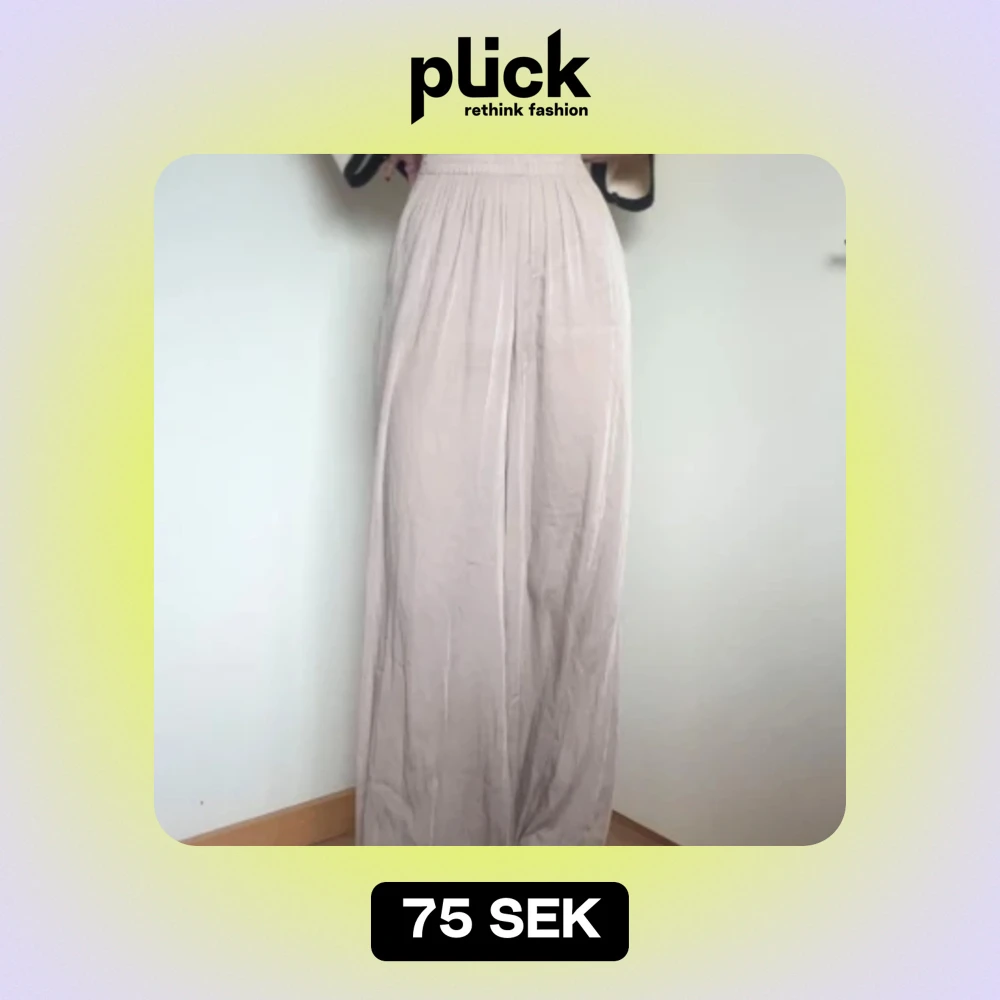 De bekvämaste byxorna man kan hitta! Beigea vida högmidjade byxor i mjukt och tunt material.
