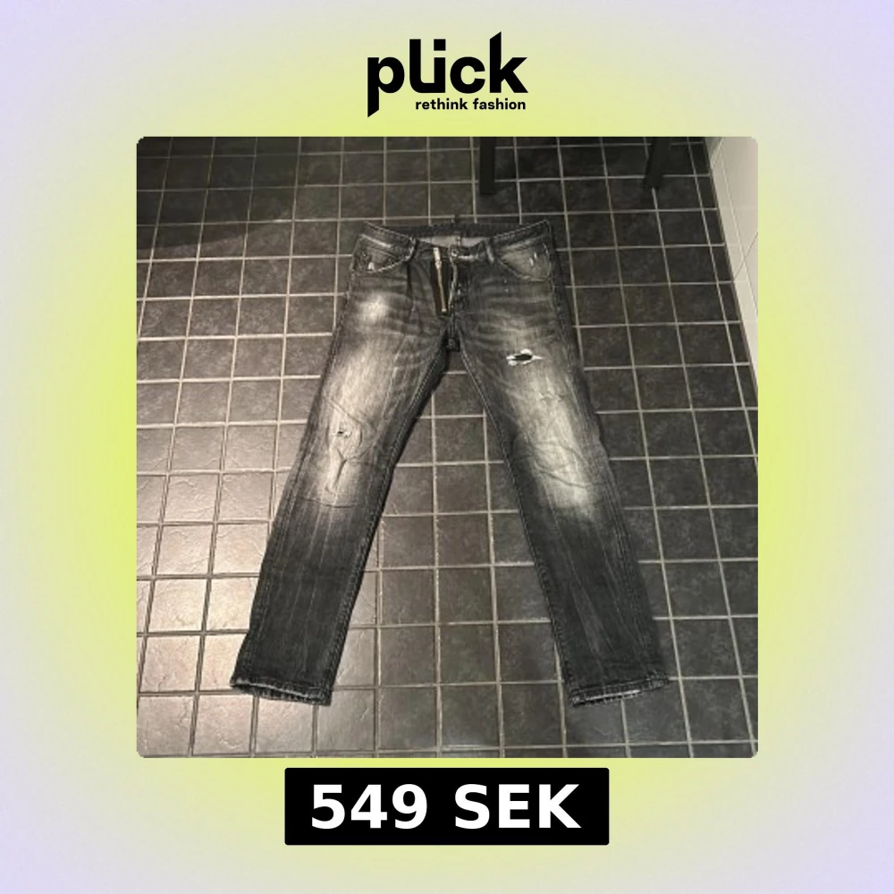 Snygga svarta jeans från DSQUARED2 med slitna detaljer och en cool tvättad look. De har en dragkedja och knappar framtill samt klassiska fem fickor. Perfekta för en trendig stil. Storlek 46 passar som 31/32.