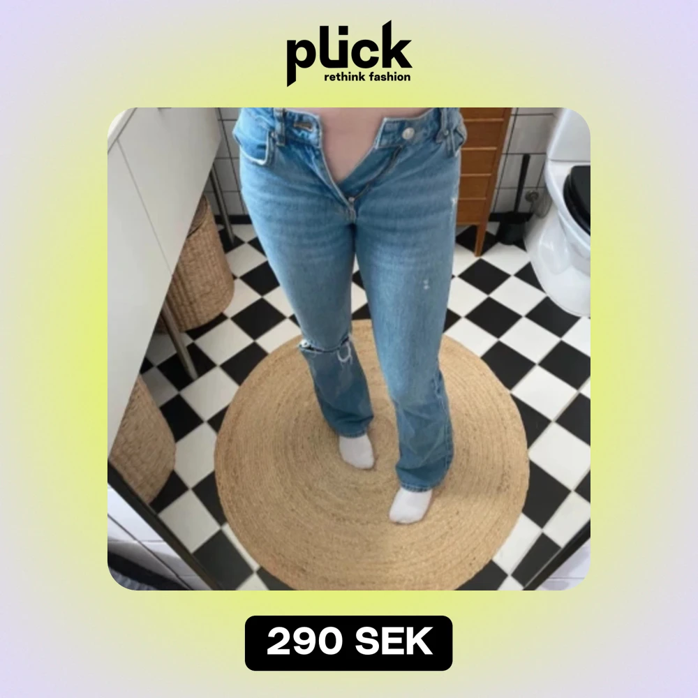 Full length flared jeans från Gina Tricot 32-33cm rakt över i midjan och innerbenslängden är 84cm. Passar mig i längden, är 172 cm lång💕