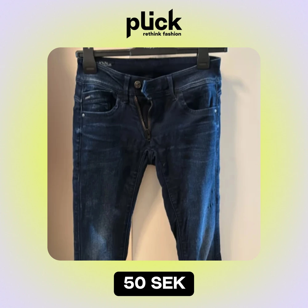 Mörkblåa jeans från G-star. Modellen är slim. Storlek W27 L34. Fin modell med dragkedja som syns och är lite på snedden.