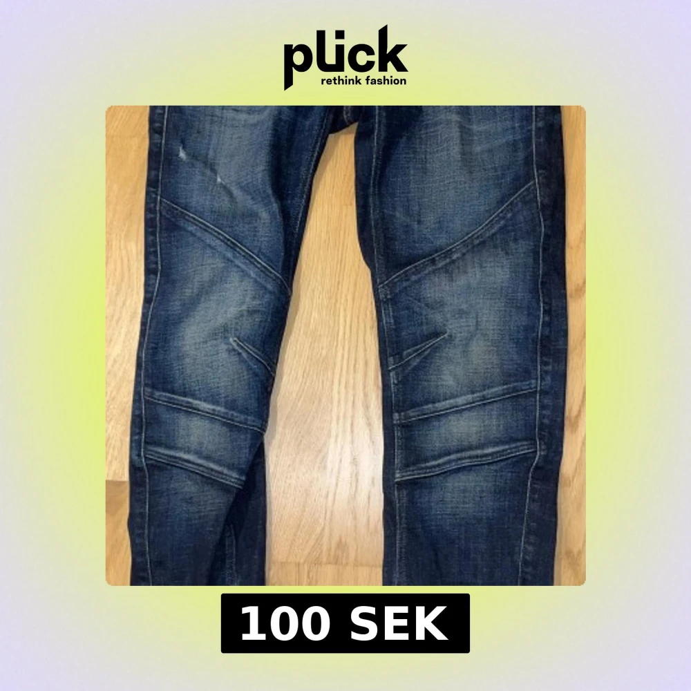 Säljer ett par mörkblå jeans från G-Star RAW med coola sömdetaljer över benen och bakfickor med broderad båge. Jeansen har klassisk femficksdesign, normal passform och slitningar för en schysst streetkänsla. G-star raw snygga herr jeans (moto cross 3d) W30 L32