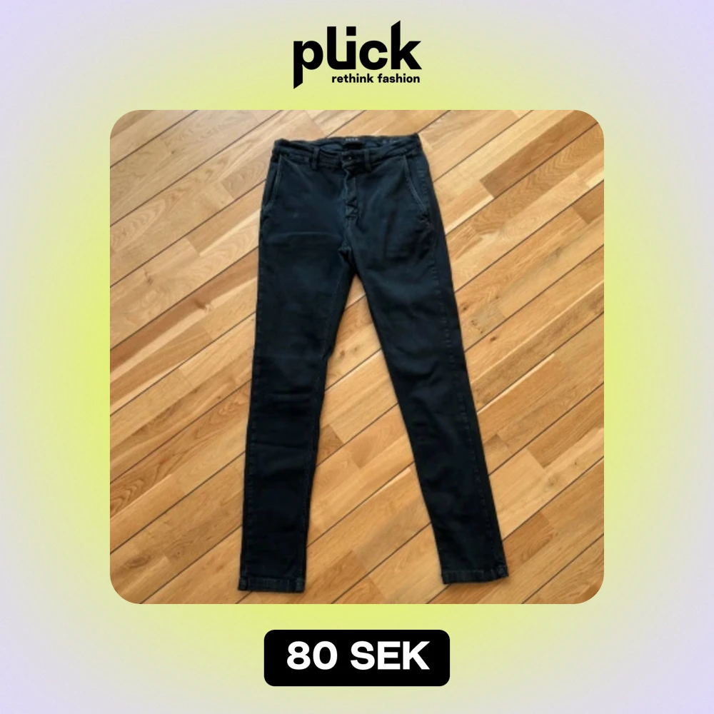 Ett par lite mer dressade jeans som är mörkgrå. Modellen heter Zeumar och de är i midjan 31, långt 32. Passar perfekt till lite snålare män med en längd runt 182.