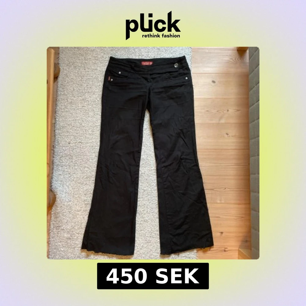 Svarta byxor från Gant i bootcut-modell med låg midja. Snygga detaljer med silverfärgade knappar och fickor både fram och bak. Lite tunnare i materialet.