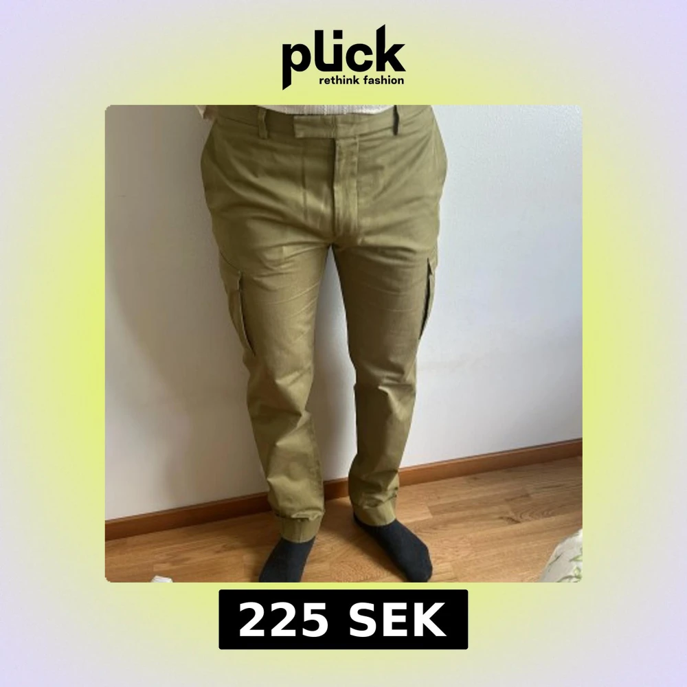Säljer ett par olivgröna cargopants från Gant med raka ben och klassiska cargofickor på sidorna. Byxorna har bälteshällor, knäppning fram och bakfickor med knapp. passformen är normal med lite tapered ben. 100% bomull