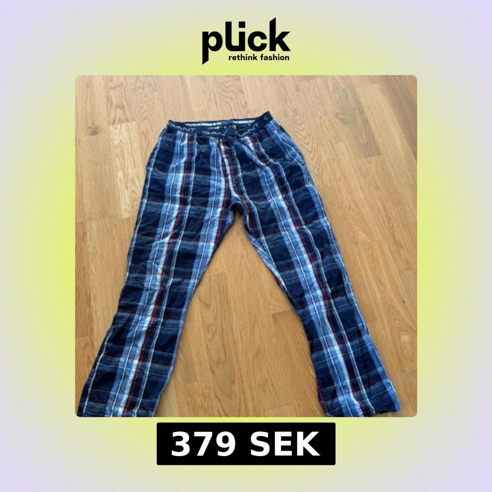 Säljer ett par sköna pyjamasbyxor från Gant i storlek L. Byxorna har ett rutigt mönster i blått, rött, vitt och svart med elastisk midja och Gant-logga på linningen. Perfekta för chill hemma eller när du vill vara extra bekväm. Köpt för 749kr mitt pris 379kr.