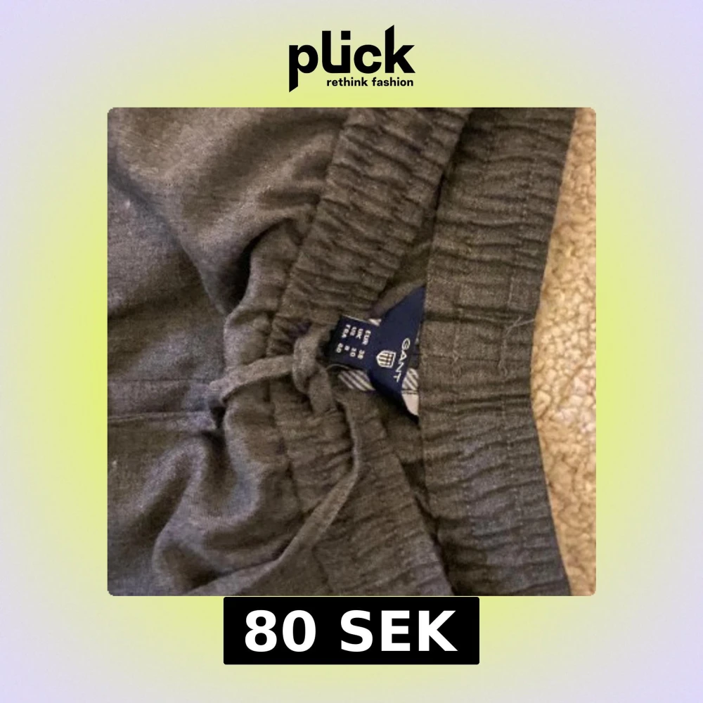 Säljer ett par grå kostymbyxor från Gant med elastisk midja och snörning. Byxorna har en avslappnad passform och är perfekta för en bekväm stil. Skickar gärna bild på om så önskas.