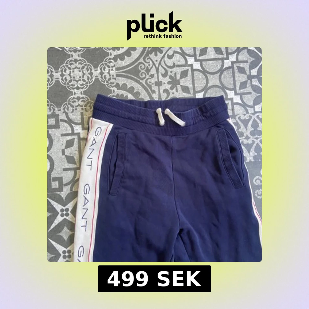 Snygga marinblå mjukisbyxor från Gant med vita sidor och röda detaljer. Byxorna har resår i midjan med snörning och fickor på sidorna. GANT-logga längs benen ger en sportig vibe. Perfekta för chill dagar eller när du vill vara bekväm men ändå se fräsch ut.